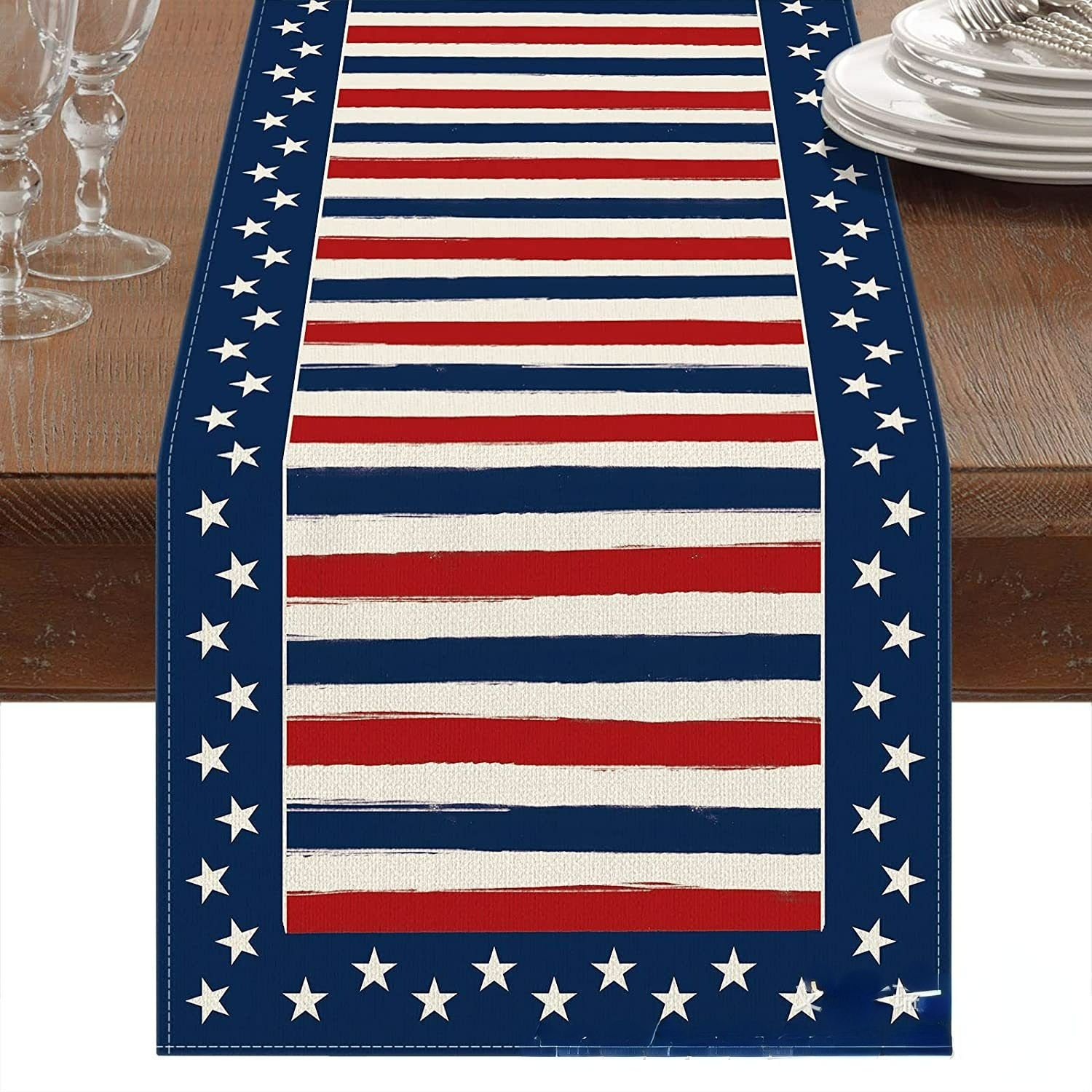 1PC Rectangle Linen Blend Striped Table Runners; Encryption Linen Home Decoration Independence Day Atmosphere Waterproof Table Runner; 72"*13"; Patrio 1PC Rectangle Linen Blend Striped Table Runners; Encryption Linen Home Decoration Independence Day Atmosphere Waterproof Table Runner; 72"*13"; Patrio 1PC Rectangle Linen Blend Striped Table Runners; Encryption Linen Home Decoration Independence Day Atmosphere Waterproof Table Runner; 72"*13"; Patrio