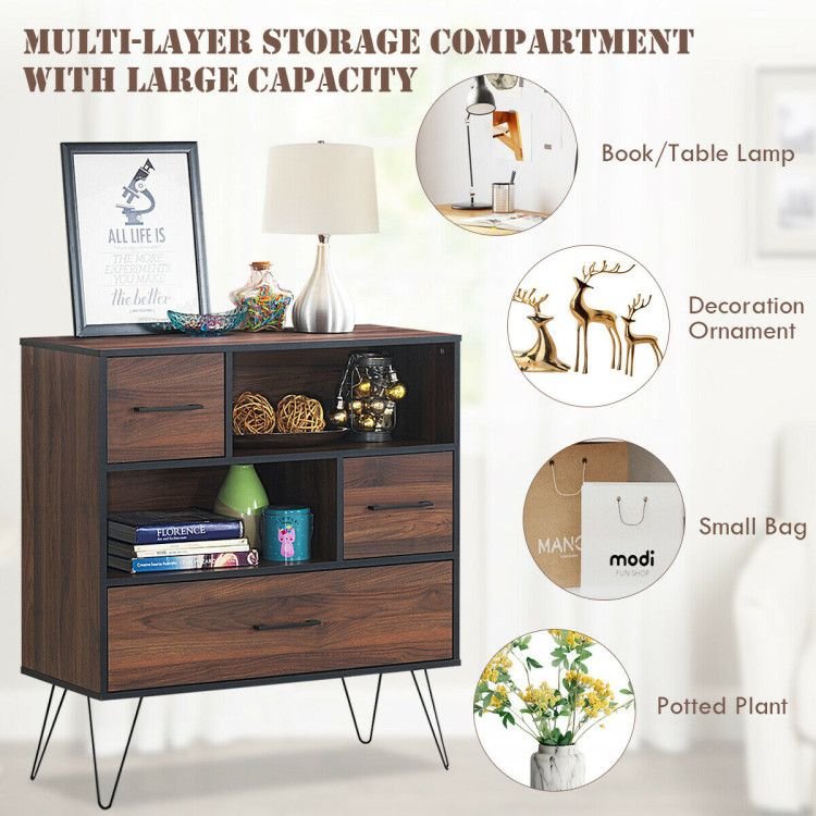 3-Tier Wood Storage Cabinet with Drawers and 4 Metal Legs 3-Tier Wood Storage Cabinet with Drawers and 4 Metal Legs 3-Tier Wood Storage Cabinet with Drawers and 4 Metal Legs