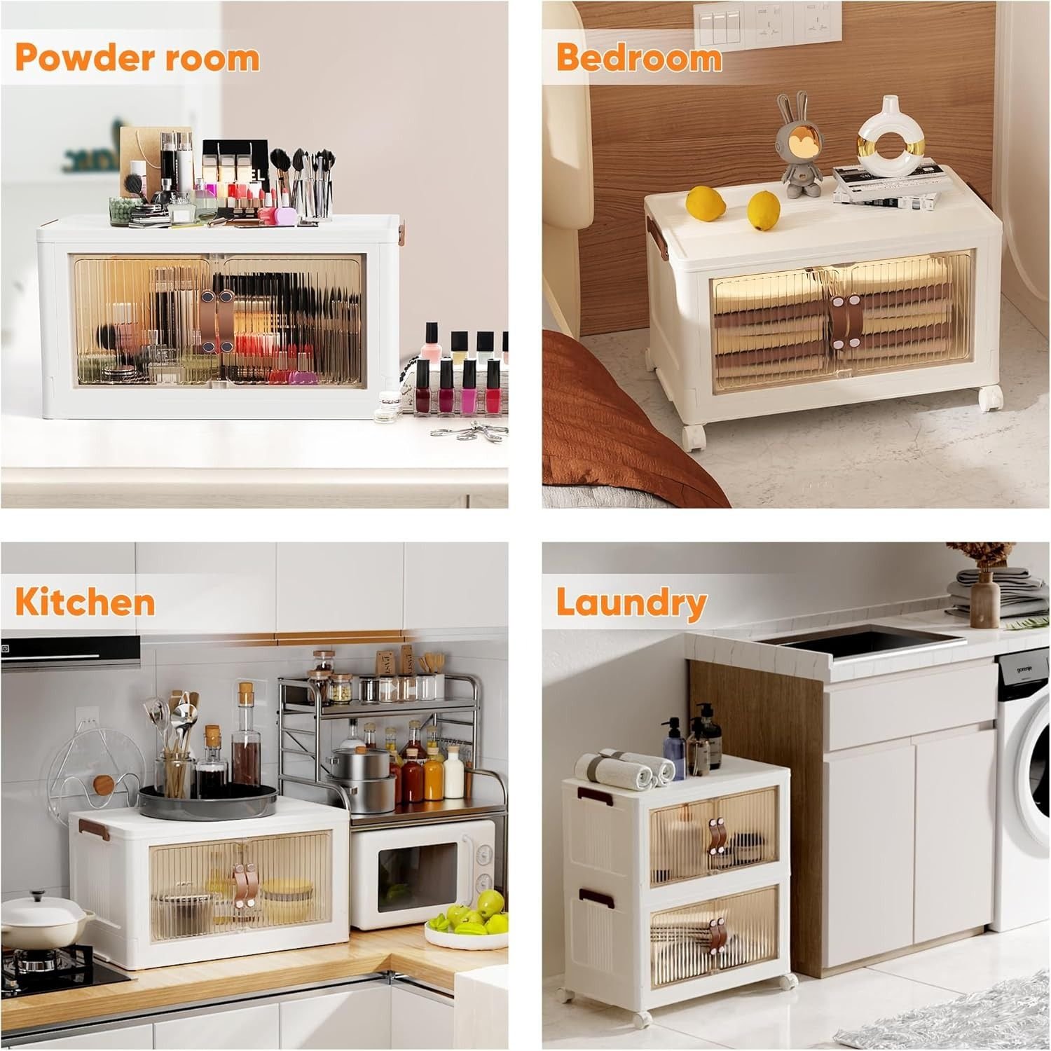 4-layer covered plastic storage box, with a total of 320QT closet organizer and stackable and foldable storage space
