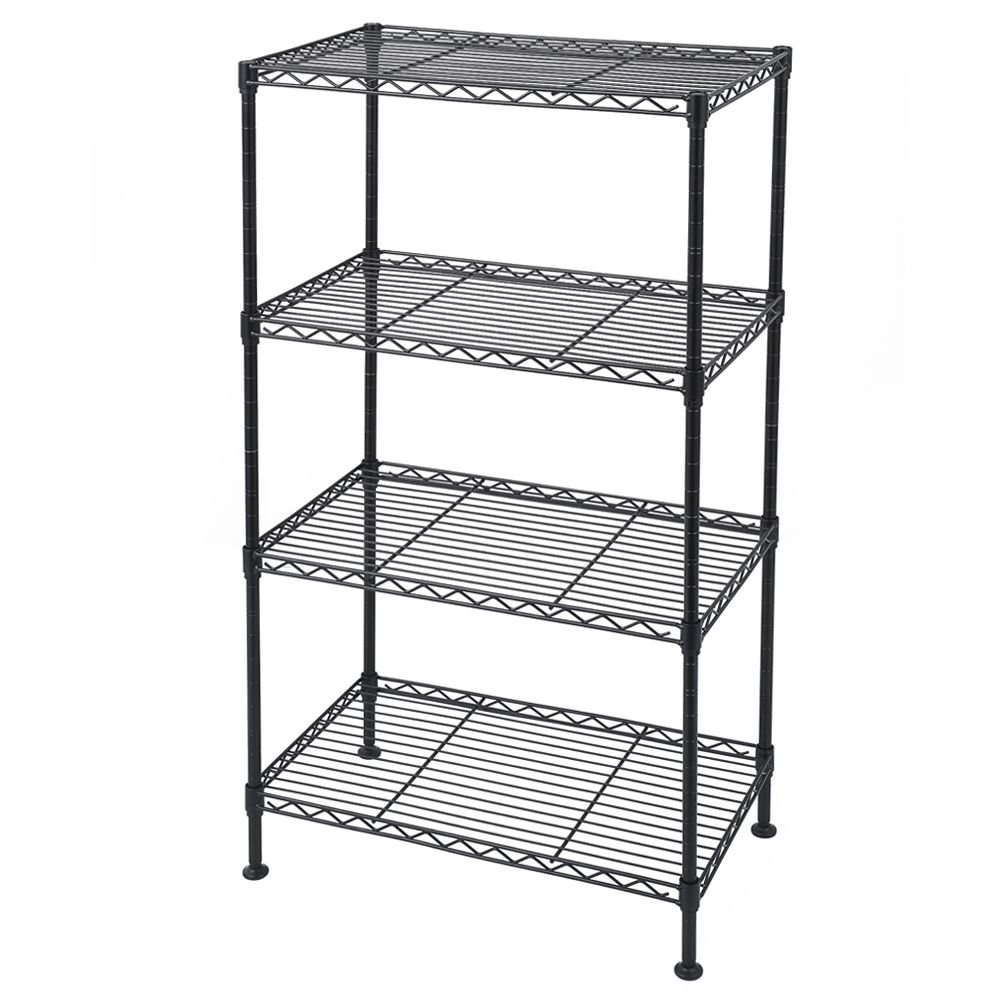 Easily add storage space in your closet, pantry, kitchen, laundry room, office, or garage with this light-duty black wire shelving unit. With adjustable wire shelves and its compact size, this industrial welded wire shelving unit is a sturdy and durable organization and storage solution in any small space. Its open wire shelf design permits sprinkler, air, and light penetration, reduces dust build-up, and helps prevent mildew and mold. Adjustable leveling feet allow the shelving unit to easily adapt to uneven surfaces. NSF certified.