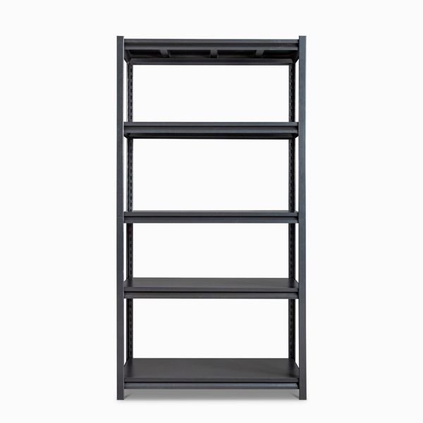 1. 2200LBS Heavy Duty Capacity: Crafted from all-metal materials, this robust shelving unit offers a load capacity of 440 lbs per shelf (evenly distributed), supporting a total of 2200 lbs. Perfect for storing heavy-duty items like garage equipment, tools, tires, or pantry goods.