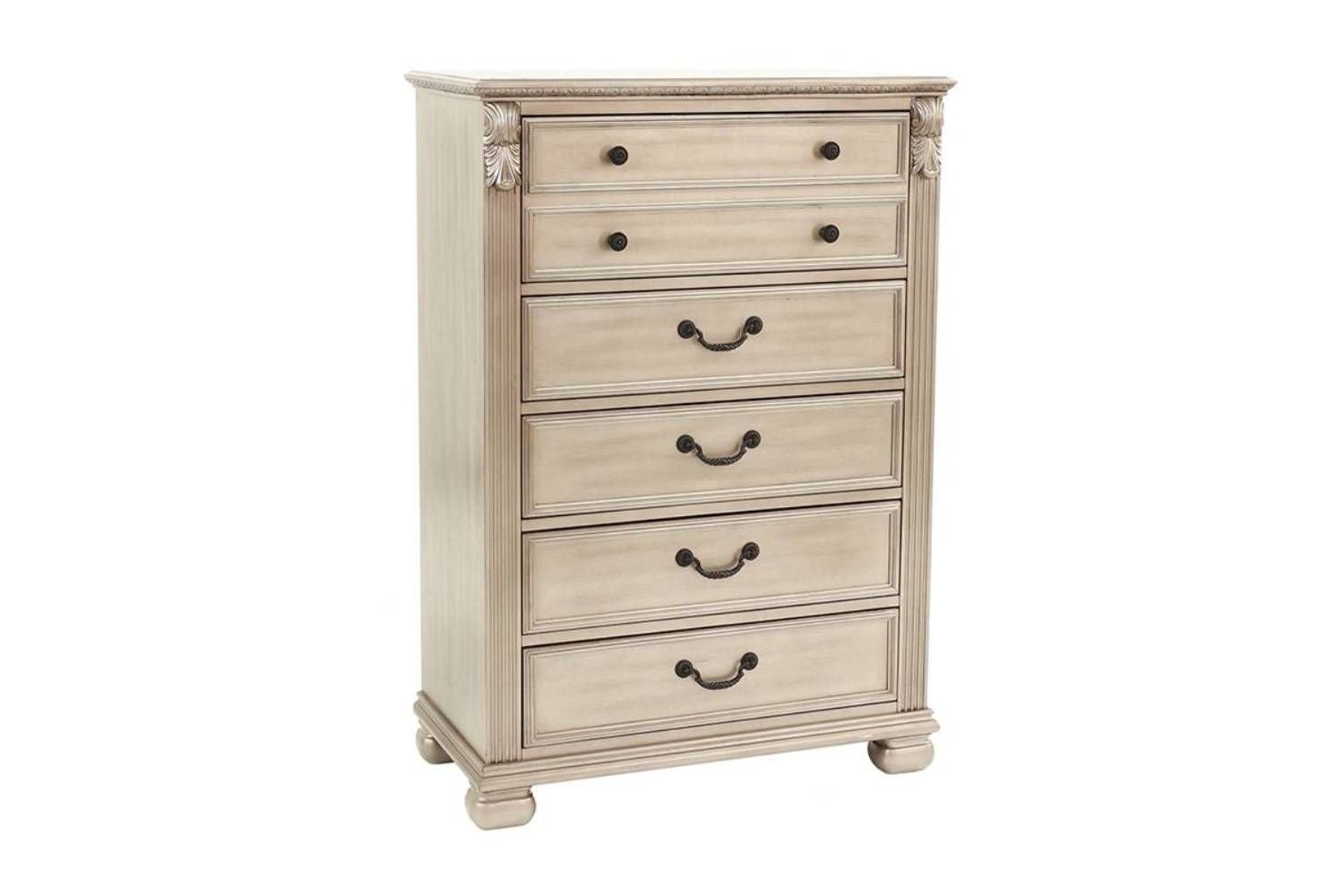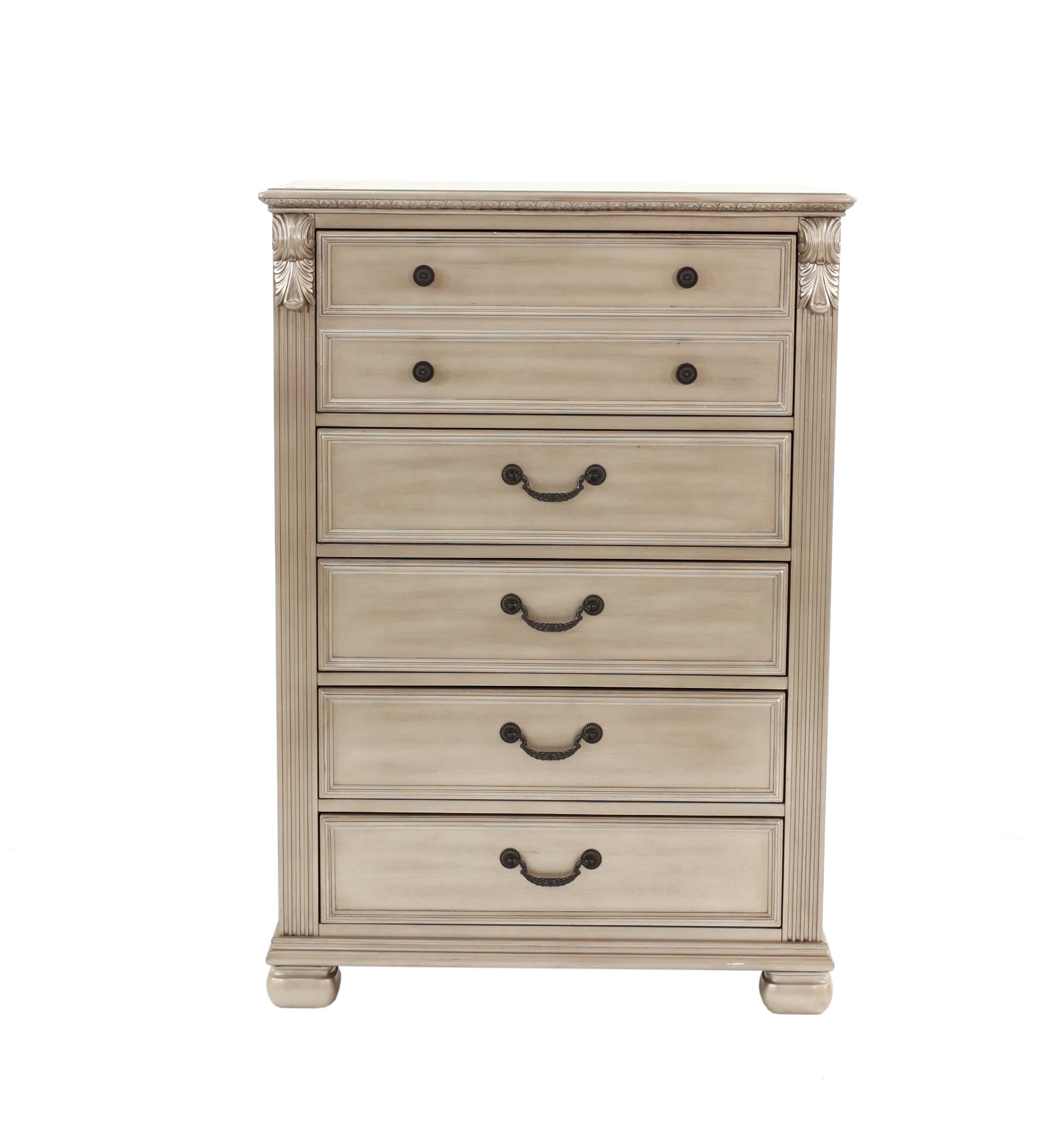 Description :- The elegant and traditionally designed chest is crafted from solid wood and features 5 spacious storage drawers. The chest and collection bed have lion claw accent carving and fluted accents. Listing Includes - 1pc Chest Of Drawers Only. Dimensions - 36" x 18" x51"H Materials - Pine / Cashew Tree / Particle Board / MDF / Birch Veneer / Plywood / Poly.Simple Assembly requires.