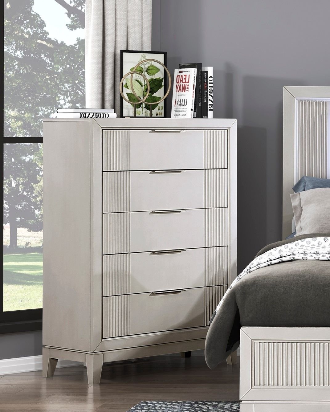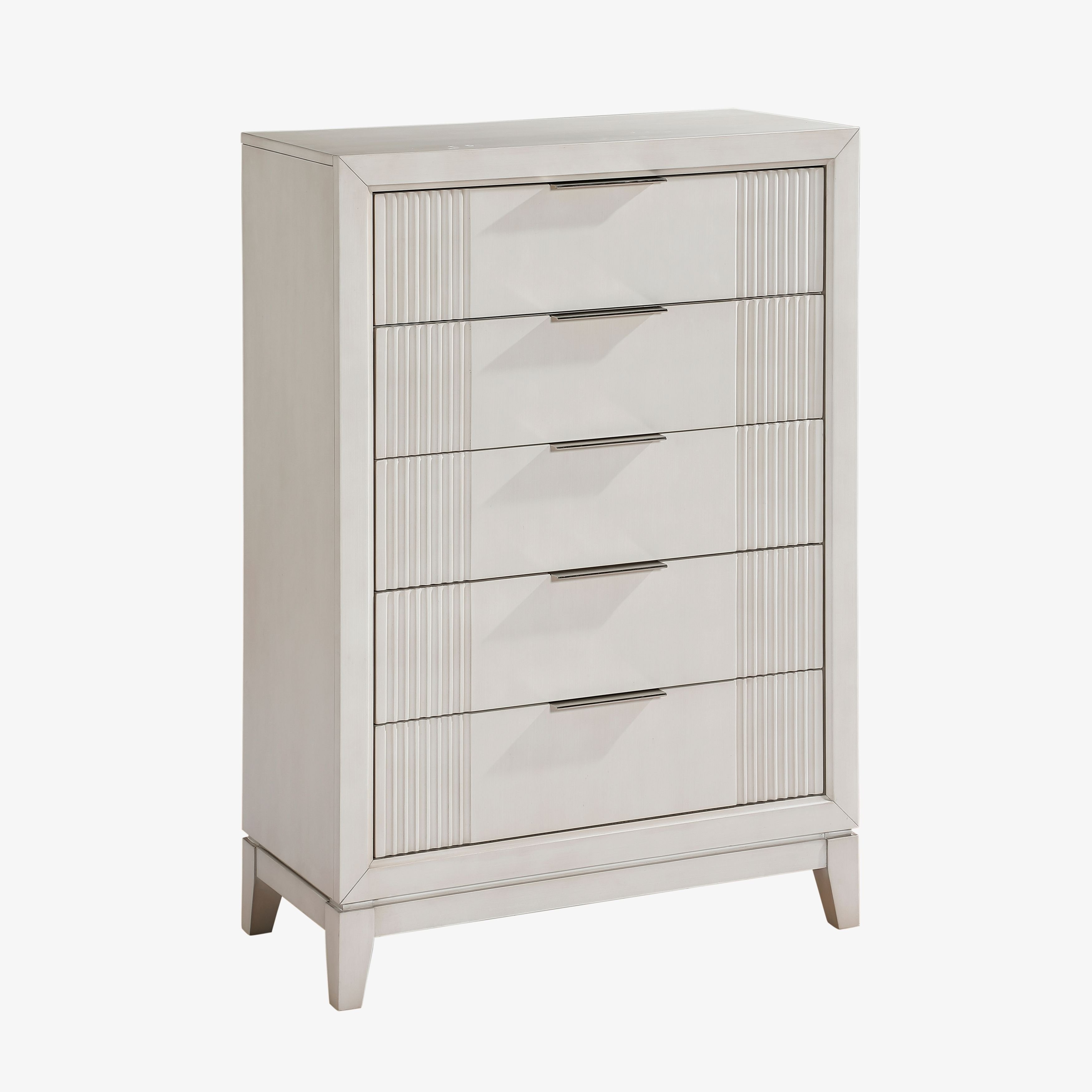 Antique White Finish 1pc Chest with 5x Drawers Modern Bedroom Furniture, Reeded Fronts Antique White Finish 1pc Chest with 5x Drawers Modern Bedroom Furniture, Reeded Fronts Antique White Finish 1pc Chest with 5x Drawers Modern Bedroom Furniture, Reeded Fronts