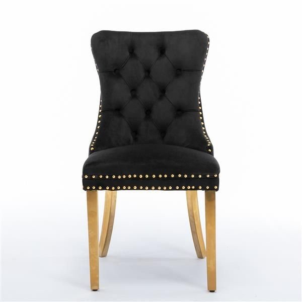 Furniture, Collection Modern, High-end Tufted Solid Wood Contemporary Velvet Upholstered Dining Chair with Golden Stainless Steel Plating Legs