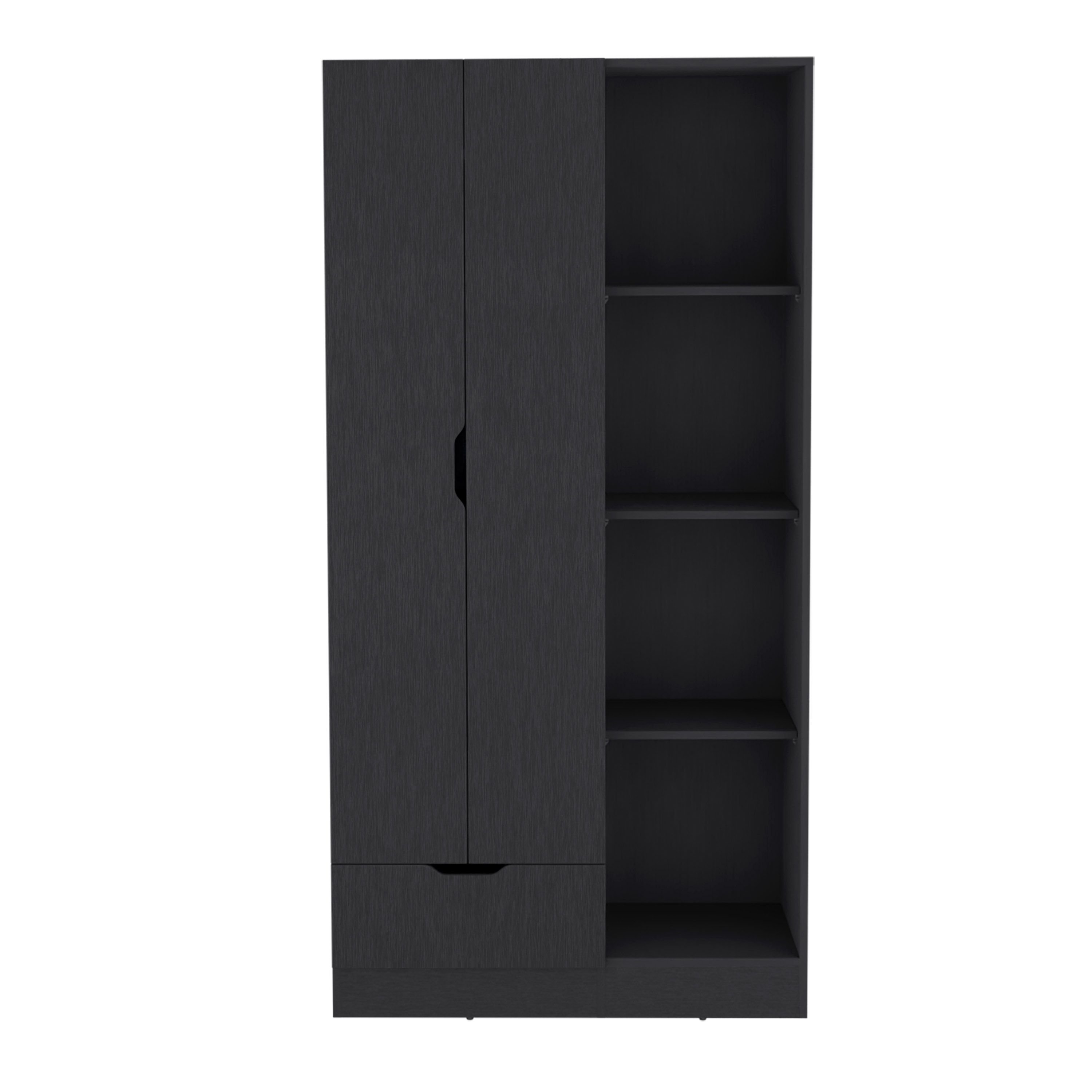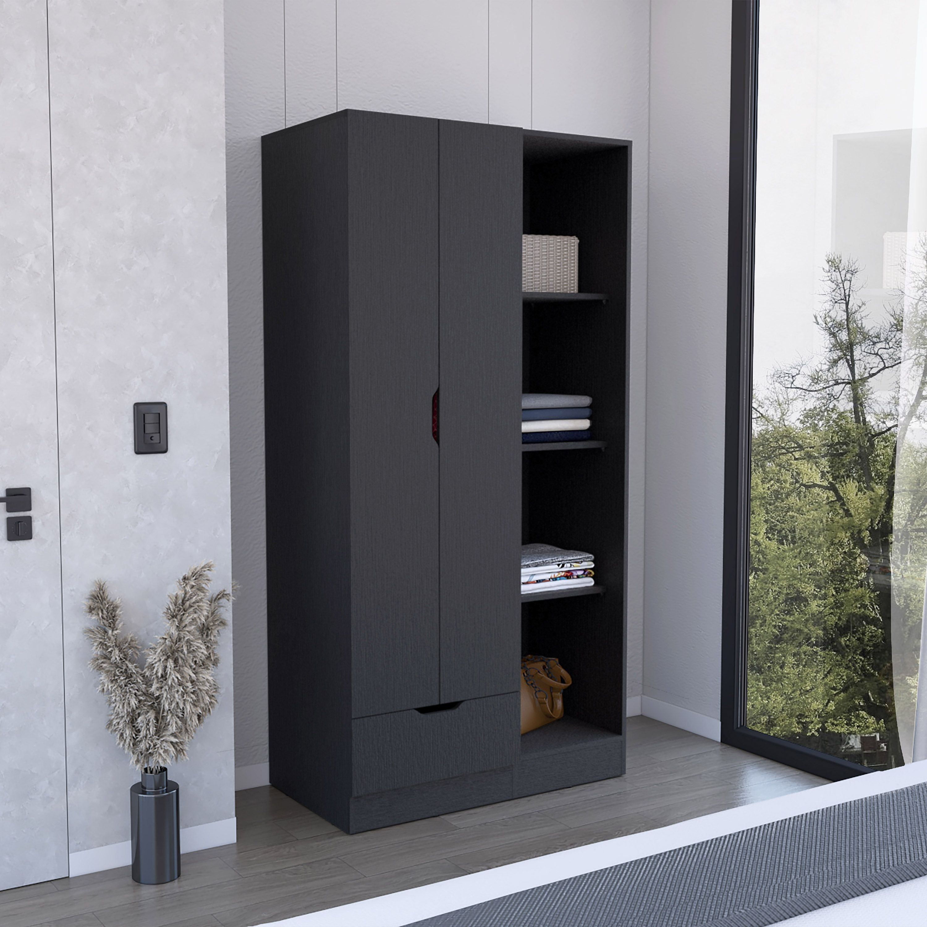 The roomy double-door cabinet provides ample space for your clothing, outerwear, and accessories, while the built-in hanging rod ensures wrinkle-free storage for your most cherished garments.