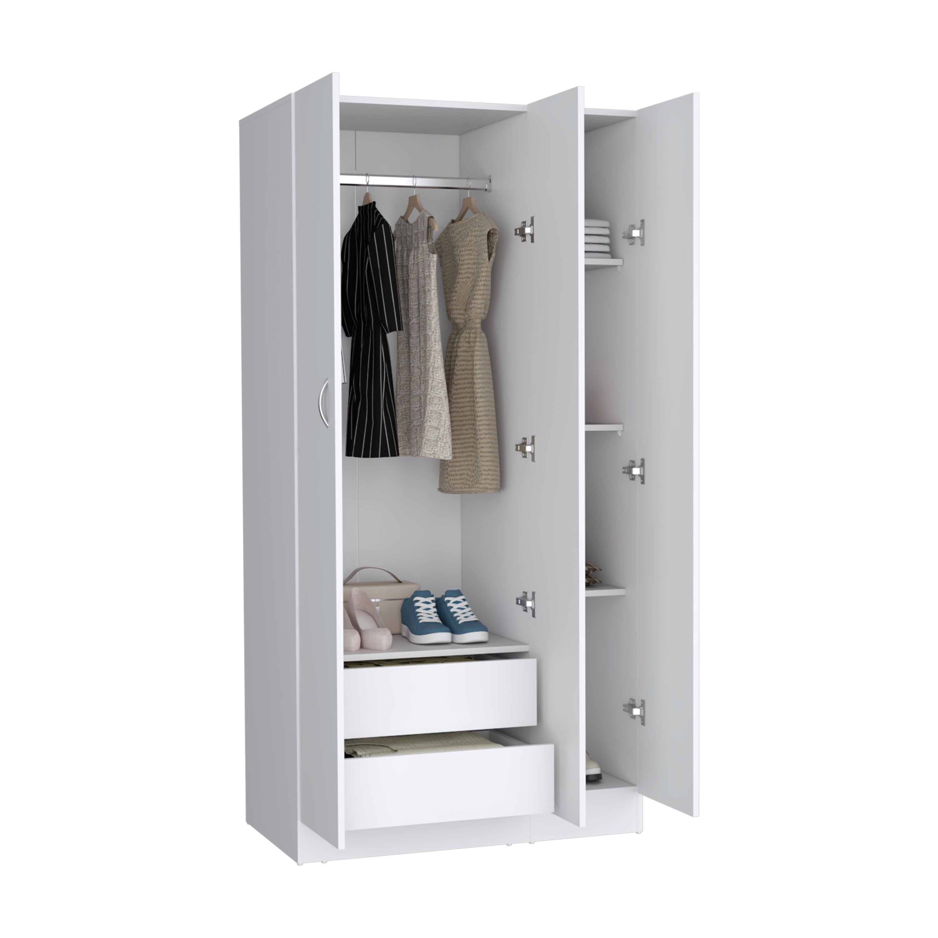 Ohio Armoire Wardrobe with 3-Doors, 2-Drawers, and 4-Tier Shelves White Ohio Armoire Wardrobe with 3-Doors, 2-Drawers, and 4-Tier Shelves White Ohio Armoire Wardrobe with 3-Doors, 2-Drawers, and 4-Tier Shelves White