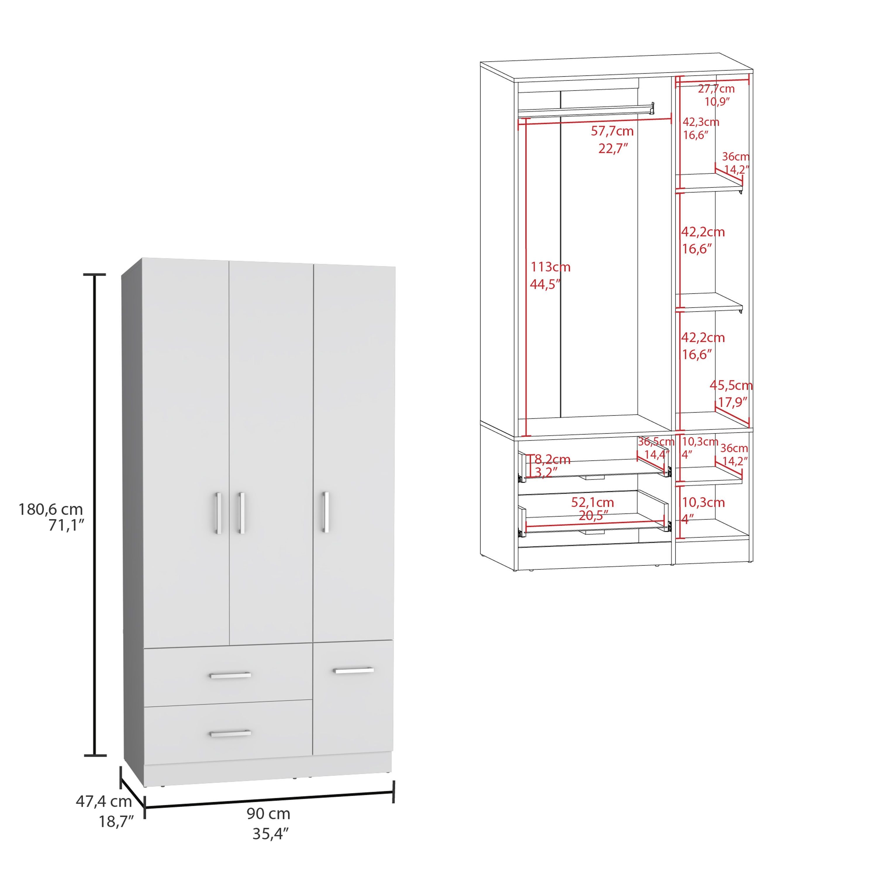 HANGING SPACE: With hanging room dimensions of 22.7 inches wide and 45 inches high, this armoire includes a hanging rod to store your pants, dresses, and shirts wrinkle-free.