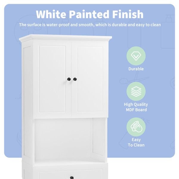 Home > Tall Bathroom Cabinet with Four Doors, Large Storage Space Open Shelve, Upper Storage Cabinet, White