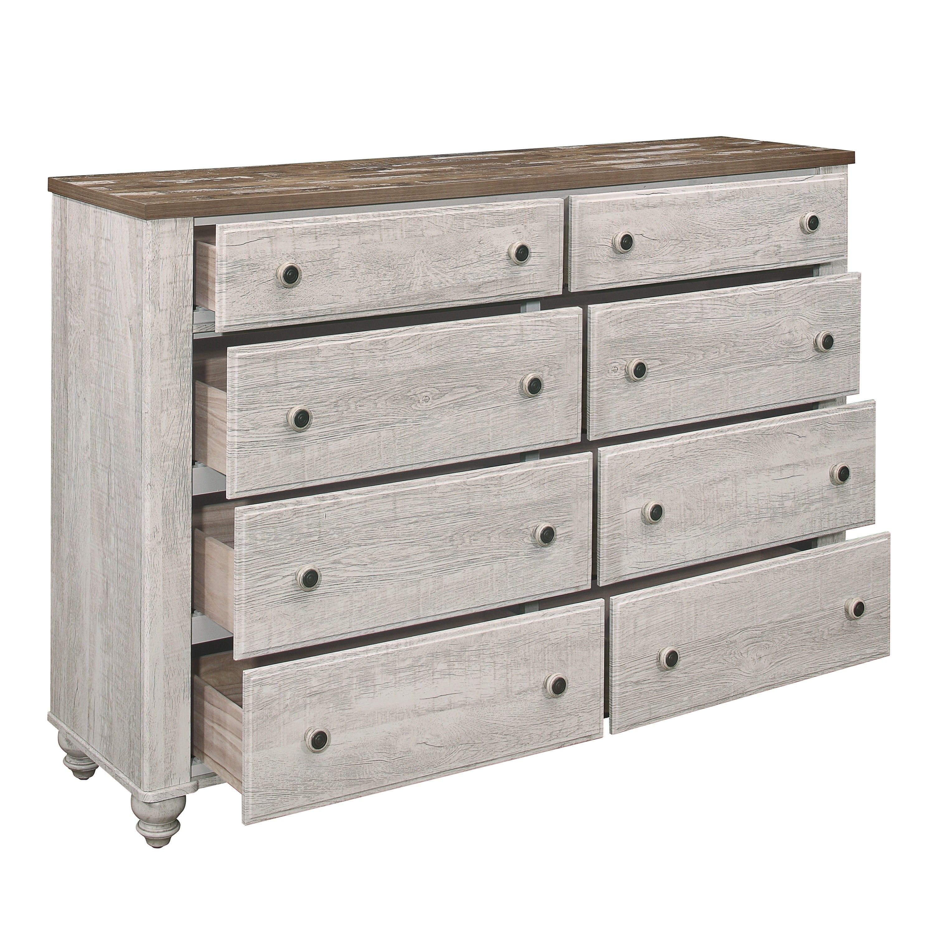 Home > Transitional Rustic Style 1pc Dresser of 8 Drawers Two-Tone Antique White and Brown Classic Bedroom Furniture
