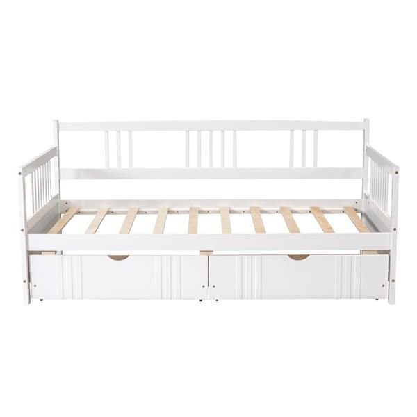 Twin Size Daybed Wood Bed with Two Drawers,White Twin Size Daybed Wood Bed with Two Drawers,White Twin Size Daybed Wood Bed with Two Drawers,White
