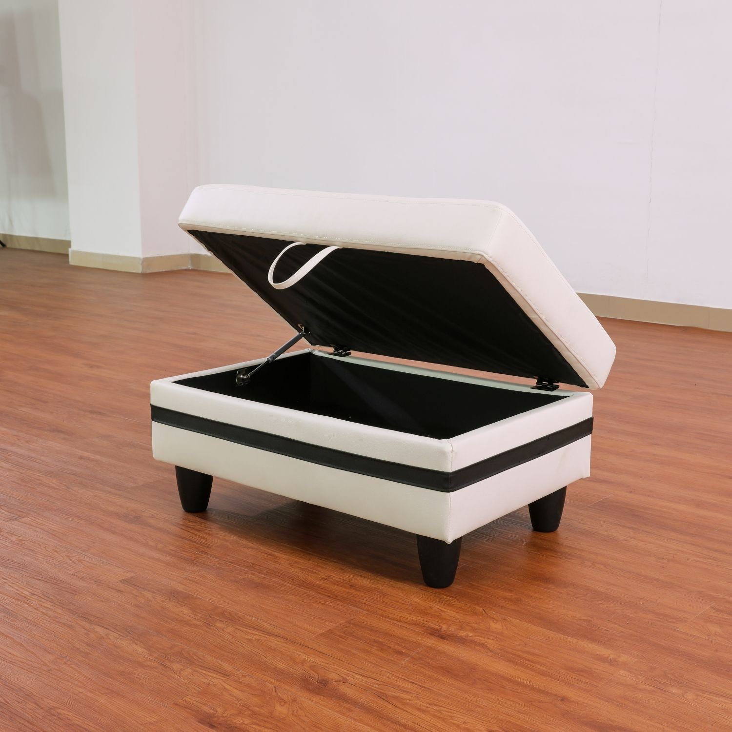 White And Black Semi PU Synthetic Leather Storage Ottoman White And Black Semi PU Synthetic Leather Storage Ottoman White And Black Semi PU Synthetic Leather Storage Ottoman